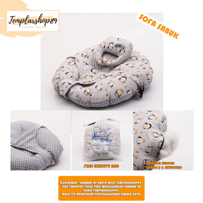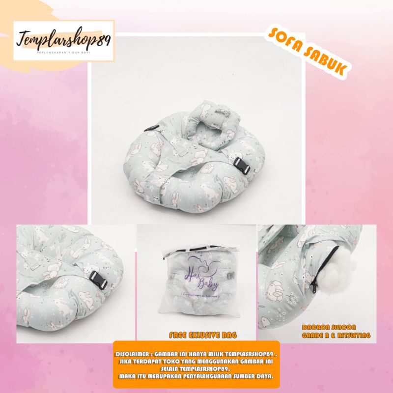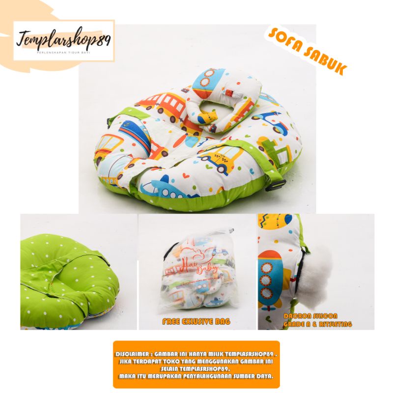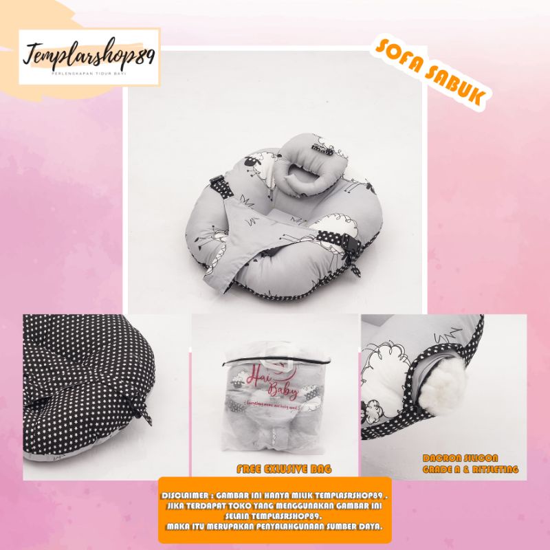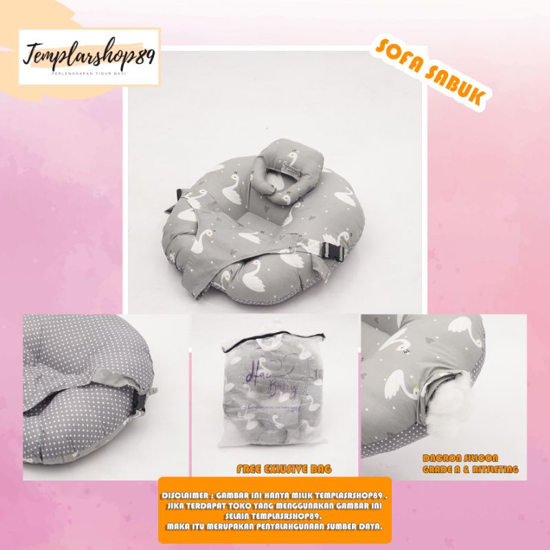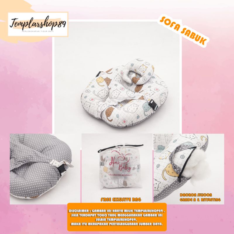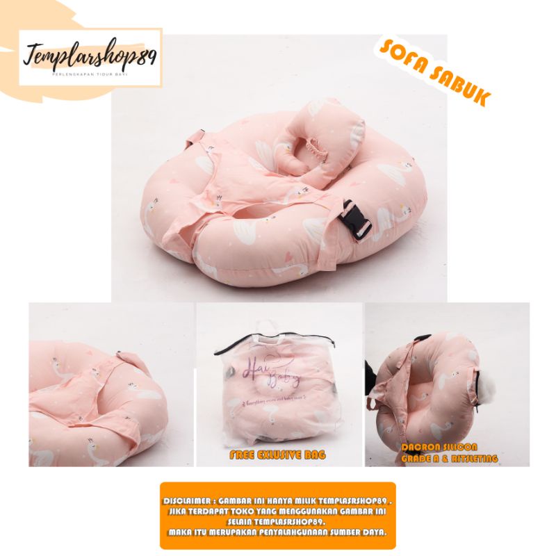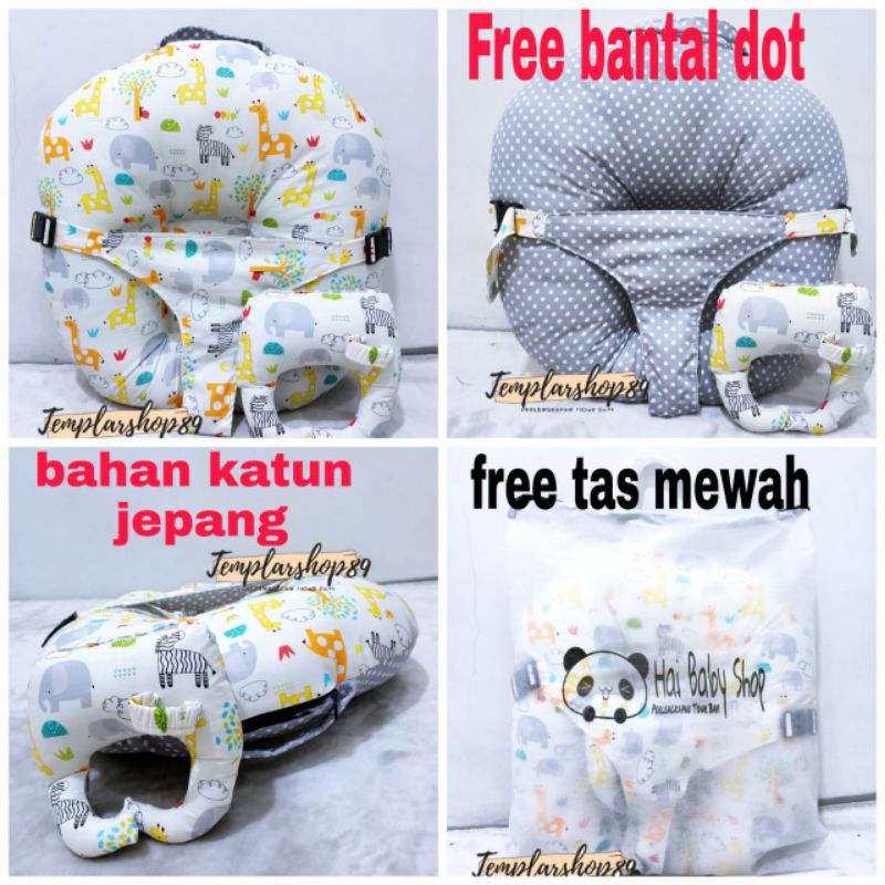 Harga cod 2in1 sofa bayi multifungsi sabuk pengaman bahan katun jepang free bantal dot dan tas mewah