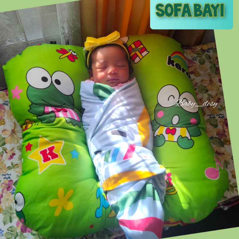 Sofa bayi / baby launger free bantal mahkota bayi motip kodok