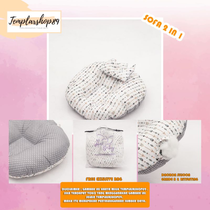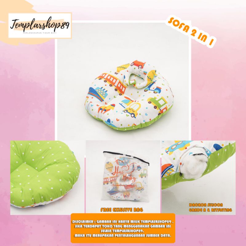 Harga cod 2in1 sofa bayi multifungsi katun jepang original free bantal dot dan tas bayi